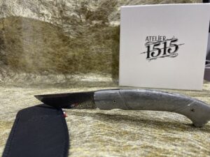 Le couteau est livré dans un jolie coffret Atelier 1515 avec un étui de poche et le certificat d’authenticité