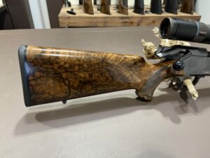 La carabine Blaser R8 Stradivari est une arme d’exception, qui utilise des matériaux nobles et modernes, dans sa fabrication. Ainsi le son boitier de culasse, est fabriqué en Ruthénium, un des matériaux parmi les plus rares au monde et parmi les plus résistants