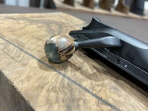 Retour à la boutiqueBoule en loupe de peuplier avec résine bleu