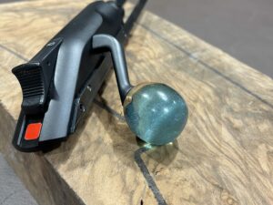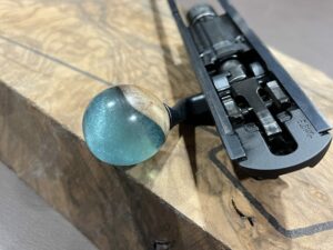 Retour à la boutiqueBoule en loupe de peuplier avec de la résine bleu
