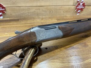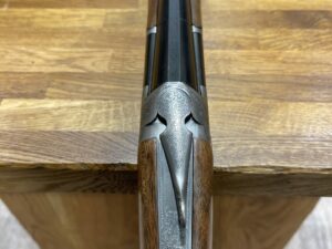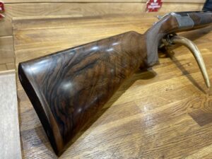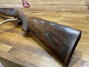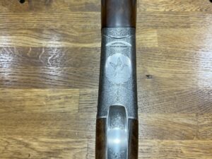 Le modèle C35 est à éjecteurs. Une forme arrondie pour la bascule. Gravure ornemental en fine anglaise sur l’ensemble de la bascule et scènes de chasse sur les deux côtés et le dessous de la bascule. Crosse anglaise en 3 étoiles. Livré en mallette Chapuis Armes.