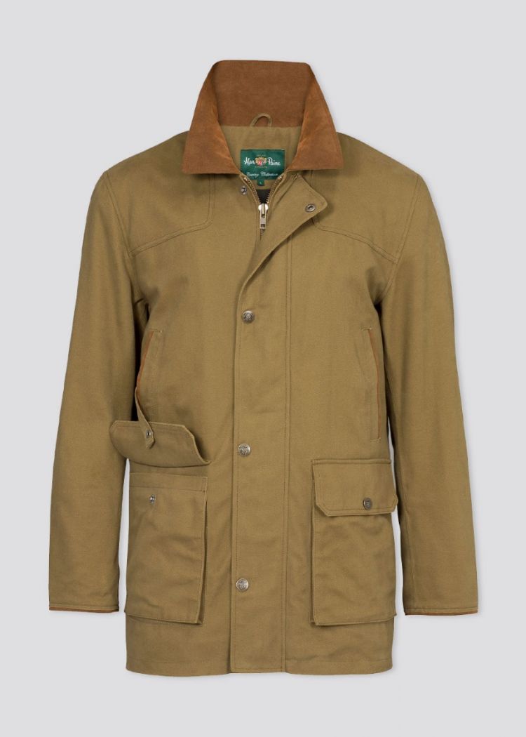 Alan Paine signe une magnifique veste de chasse en coton épais, une veste silencieuse, très élégante aussi bien à la chasse qu’à la ville.