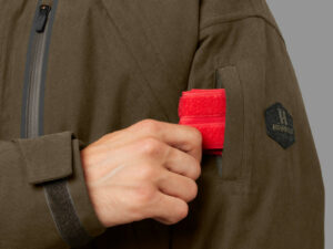La Driven Hunt HWS et dotée d’une poche radio facilement accessible sur le côté gauche avec une ouverture à zip à la fois latérale et supérieure. Sur le haut de la manche gauche, la veste dispose d’une petite poche avec une bande réfléchissante cousue qui est rouge d’un côté et orange de l’autre. Vous pouvez ainsi facilement accroitre votre visibilité au poste grâce à sa fixation autour du bras.